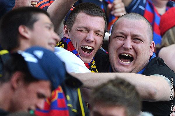 Болельщики ЦСКА радуются забитому голу.