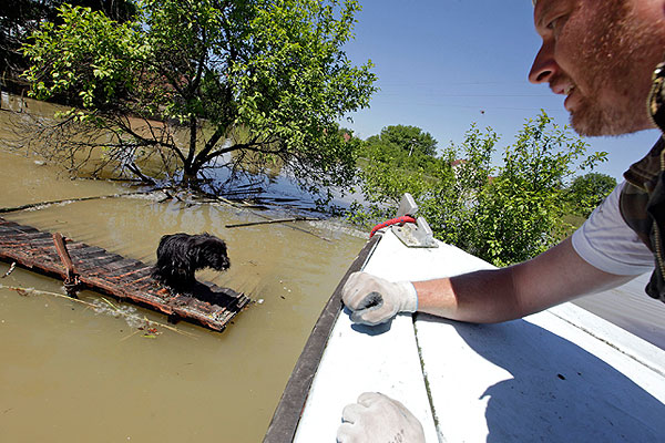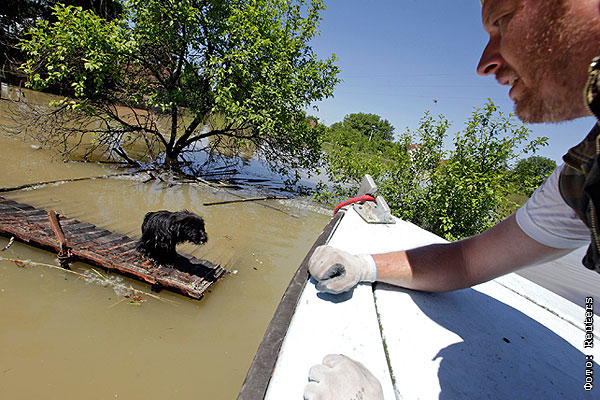 Жители пострадавшего от сильнейших наводнений региона спасают домашних животных и своих питомцев.