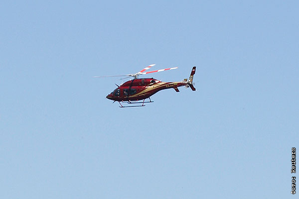 Вертолет в небе над местом аварии в 80 км от Москвы на перегоне Бекасово - Наро-Фоминск.