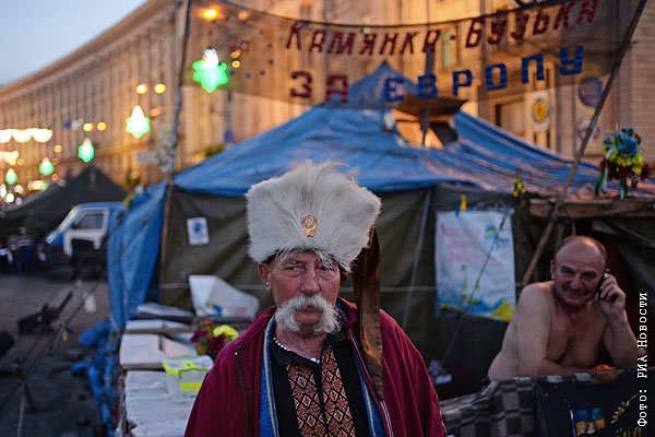 Сторонники евроинтеграции в палаточном лагере на площади Независимости в Киеве.