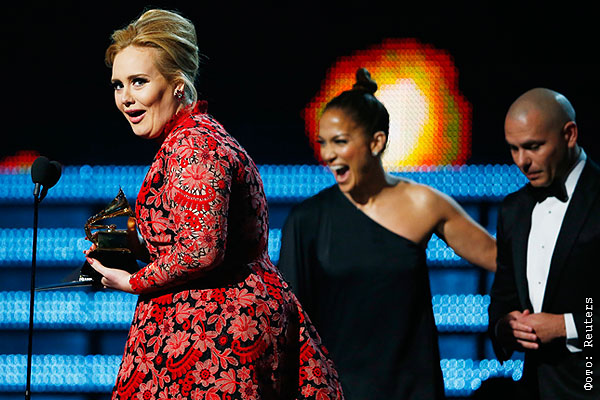 12 февраля 2013 г. Певица Адель уносит свою награду Grammy. Перед этим на сцену выскочил Виталий Седюк и попытался получить награду вместо Адель.