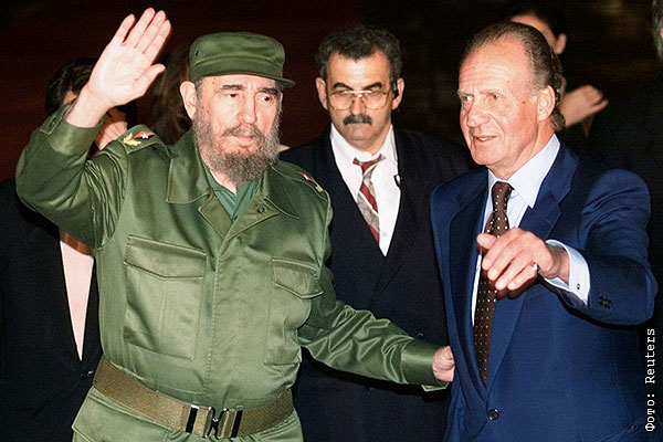 Фидель Кастро и король Хуан Карлос в аэропорту Гаваны.