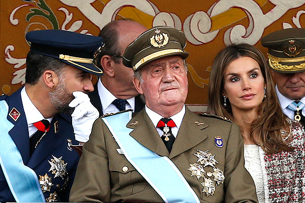 Принц Фелипе, король Хуан Карлос и принцесса Летиция на военном параде в Мадриде.