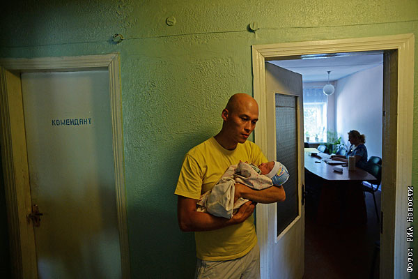 Беженцы из Славянска, размещенные в одном из общежитий города Иловайск Донецкой области.