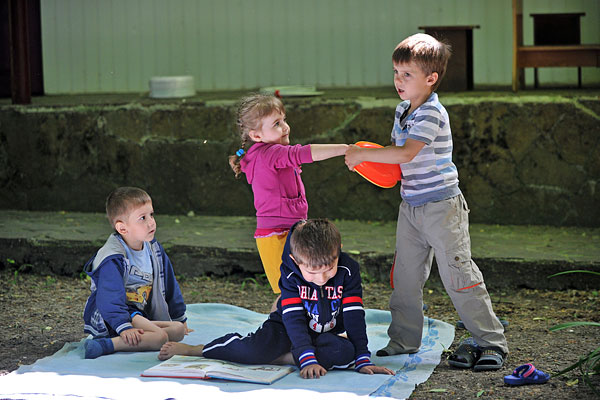 Дети играют на территории оздоровительного центра "Дмитриадовский" в Ростовской области.