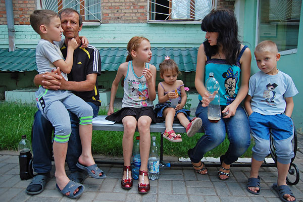 Семья с юго-востока Украины ожидает получения свидетельства о временном убежище и статусе беженца возле отделения Федеральной миграционной службы в Белгороде.