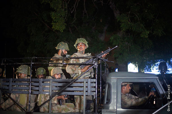Солдаты пакистанской армии прибывают в международный Карачи.