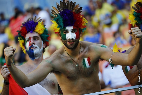 Болельщики сборной Италии перед началом матча против команды Англии.