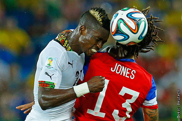 Джон Бойе (сборная Ганы) и Джермейн Джонс (сборная США) во время матча первого тура Группы G.
