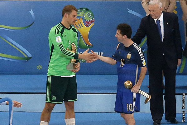 Мануэль Нойер (слева) стал лучшим вратарем чемпионата, а Лионель Месси - лучшим игроком турнира.