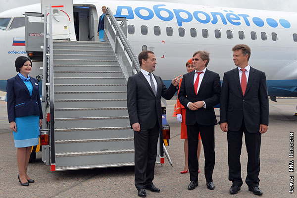 Председатель правительства РФ Дмитрий Медведев принял участие в отправке первого рейса авиакомпании "Добролет".