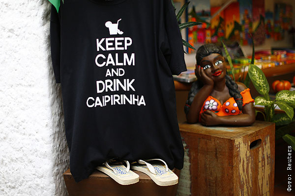 Майка с надписью "Будь спокоен и пей кайпиринью". Кайпиринья (порт. Caipirinha) — популярный бразильский алкогольный коктейль, который готовится из кашасы, лайма, льда и тростникового сахара.