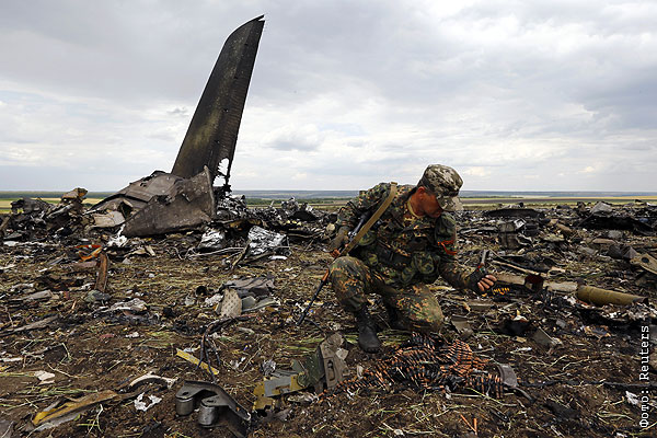 На борту сбитого под Луганском Ил-76 находились 40 украинских десантников и девять членов экипажа. Все они погибли, сообщается на сайте Генеральной прокуратуры Украины.