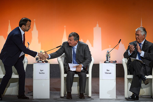 Аркадий Дворкович и Игорь Сечин на XXI Мировом нефтяном конгрессе в МВЦ "Крокус Экспо".
