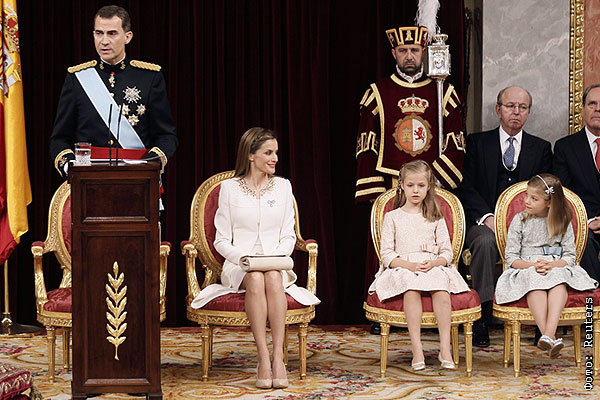Король Испании Филипп VI, королева Летиция и две их дочери: принцесса Астурийская Леонор и инфанта София.