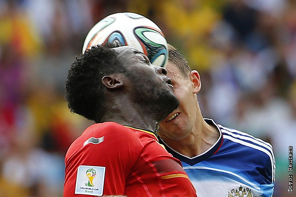 Сборная России по футболу играет с командой Бельгии в матче группового этапа чемпионата мира в Бразилии.