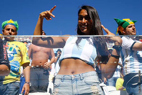 Аргентинская болельщица отвлекает мужчин от футбола.