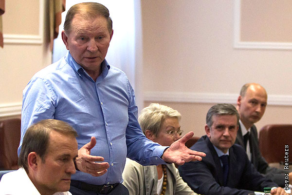 Бывший президент Украины Леонид Кучма во время переговоров по реализации мирного плана на востоке Украины.