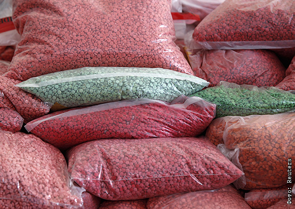 Упаковки с амфетаминовыми таблетками, изъятые в Таиланде.