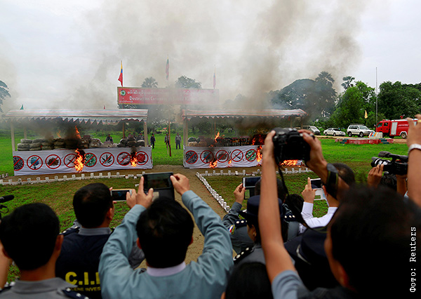 В Таиланде, Китае и Мьянме 26 июня все изъятые наркотики сожгли.