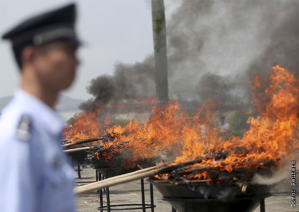 В Таиланде, Китае и Мьянме 26 июня все изъятые наркотики сожгли.