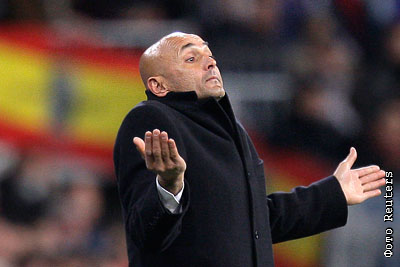 Тренер "Ромы" Лучиано Спалетти реагирует на ход игры. "Реал"-"Рома" 1:2