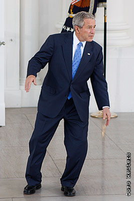 Президент Соединенных Штатов решил развлечь себя и корреспондентов, ожидавших приезда сенатора Джона Маккейна. На крыльце Белого дома Джордж Буш исполнил пару чечеточных па. Ранее Госсекретарь США Кондолиза Райс, сопровождавшая президента Джорджа Буша и его жену Лору в официальной поездке по африканскому континенту, видела, как он танцевал вместе с африканскими аборигенами
