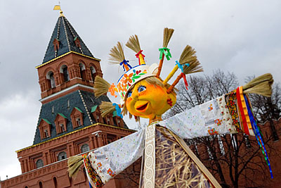 Фигура Масленицы на ярмарке на Васильевском спуске