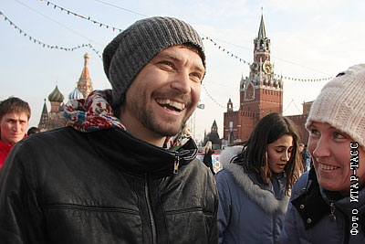 Солист группы "Ума Турман" Владимир Кристовский на катке на Красной площади