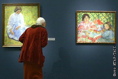На выстаке, посвященой юбилею легендарной выставки "Салон Золотого Руна". В Третьяковской галерее воссоздали выставку столетней давности