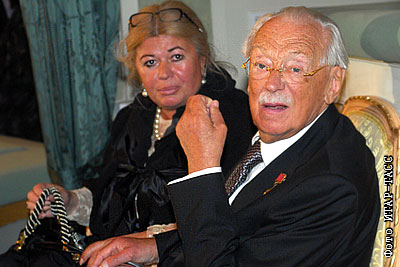 Поэт и писатель Сергей Михалков с супругой Юлией Субботиной перед началом празднования своего 95-летия на Новой сцене Большого театра
