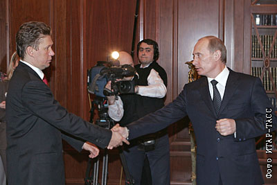 Глава "Газпрома" Алексей Миллер и президент России Владимир Путин на встрече в Кремле