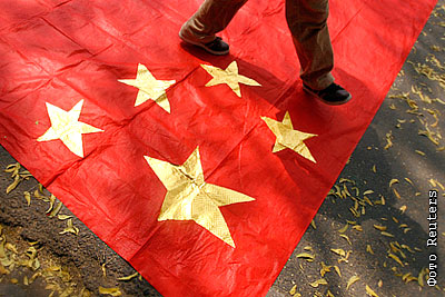 Тибетцы устроили демонстрацию, требуя независимости Тибета от Китая и протестуя против репрессивных мер китайского правительства