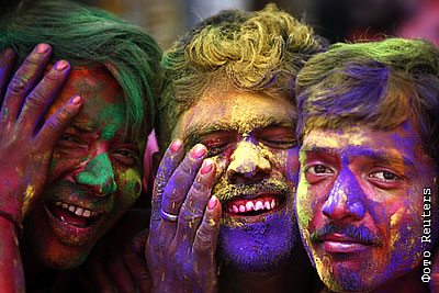 В Индии отметили самый яркий праздник весны - праздник Холи. Проходит он в последнее полнолуние марта, крайне весел и буен на севере и востоке Индии, но более скромен на юге.