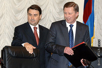 Министр транспорта РФ Игорь Левитин и первый вице-премьер РФ Сергей Иванов на заседании