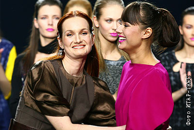 Дизайнер Таша Строгая и телеведущая Оксана Федорова после показа в Гостином дворе