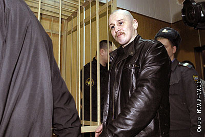 Один из обвиняемых, член запрещенной в России Национал-Большевистской партии (НПБ) в зале заседания