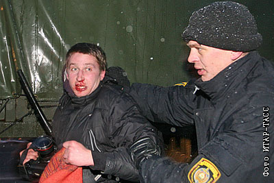 Задержание фотокорреспондента на митинге оппозиции, приуроченном к 90-летию со дня образования Белорусской народной республики (БНР), на проспекте Независимости