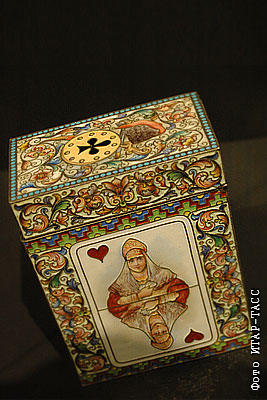 Шкатулка для карт (1900 г.) работы Федора Рюкерта на выставке произведений русского искусства, которые в апреле будут представлены на торги аукционного дома Sothbey's в Нью-Йорке