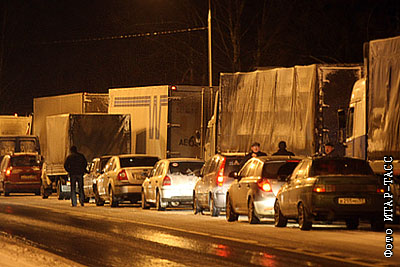 Пятидесятикилометровая пробка на новгородском участке автомагистрали Москва - Санкт-Петербург