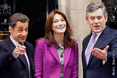 Никола Саркози и первая леди Франции Карла Бруни встретились с премьер-министром Великобритании Гордоном Брауном