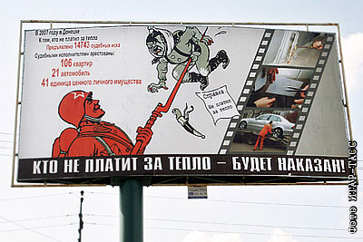 Агитационный билборд установлен в рамках информационно-разъяснительной кампании по заказу городской теплосети на одной из улиц Донецка