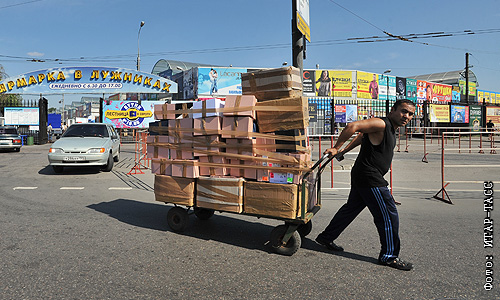 Вывоз товара с территории вещевого рынка у спорткомплекса "Лужники".