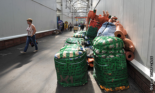 Остатки товара на территории вещевого рынка у спорткомплекса "Лужники".
