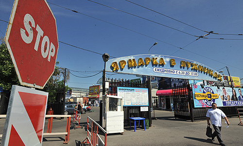 Вход на территорию закрытого вещевого рынка у спорткомплекса "Лужники".