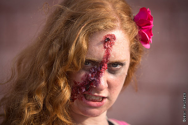 В Нью-Йорке провели традиционный фестиваль на тему атак зомби. Жители Бруклина с удовольствием перевоплотились в "живых мертвецов" при помощи красочного грима и приняли участие в шествии на Кони-Айленде.
