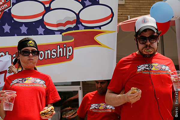 В Вашингтоне в честь празднования Дня Независимости США прошел шестой чемпионат по поеданию бургеров на скорость.