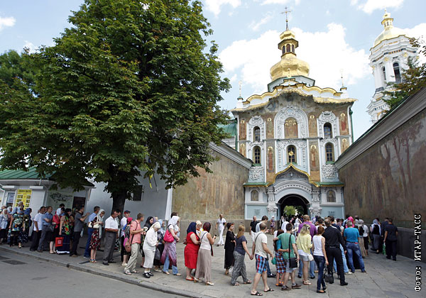 Очередь во время прощания с митрополитом Киевским и всея Украины Владимиром в Киево-печерской лавре.