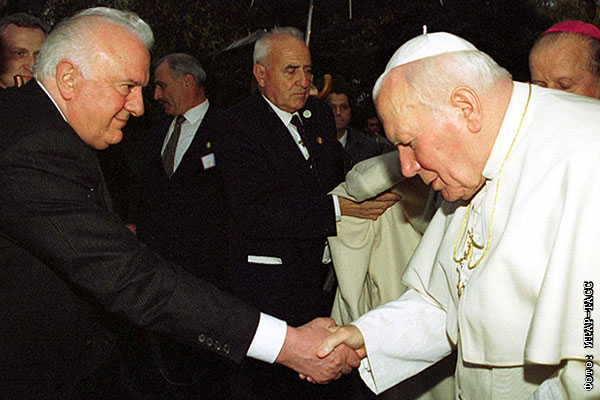 Эдуард Шеварднадзе (на снимке слева) принял в правительственной резиденции Папу Римского Иоанна Павла Второго, находящегося с визитом в стране.