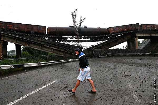 Неизвестные в понедельник взорвали в районе населенного пункта Новобахмутовка Донецкой области Украины железнодорожный мост над дорогой, ведущей из Славянска в Мариуполь. В сообщении службы автодорог Донецкой области уточняется, что в результате взрыва произошло обрушение пролетов моста на дорожное полотно. В момент взрыва на железнодорожной линии находился грузовой состав. Он не упал на дорогу, но провис на покореженных конструкциях.